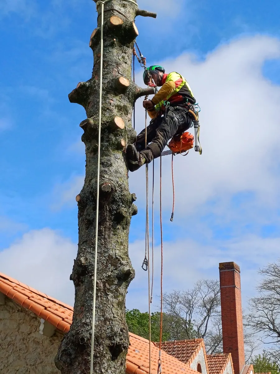 Pas obligatoirement, la législation demande de travailler si possible avec une nacelle. Pour différentes raisons, accessibilité du chantier, déclivité trop forte, sol non porteur, hauteur… Le travail se fera à la grimpe, les élagueurs sont formés à ce type de travail très exigeant. Les nacelles évoluent fortement depuis quelque temps, mais ne permettent pas le travail au cœur du houppier pour vous donner un dernier exemple. Par contre, la nacelle va être favorisée sur les opérations non réalisables à la grimpe ou dangereuses pour un grimpeur (un arbre mort par exemple, des réductions très fines sur l’extérieur du houppier d’un arbre…). C’est un outil complémentaire à la grimpe et permettant d’enchainer les arbres plus rapidement dans le cas d’alignement.
